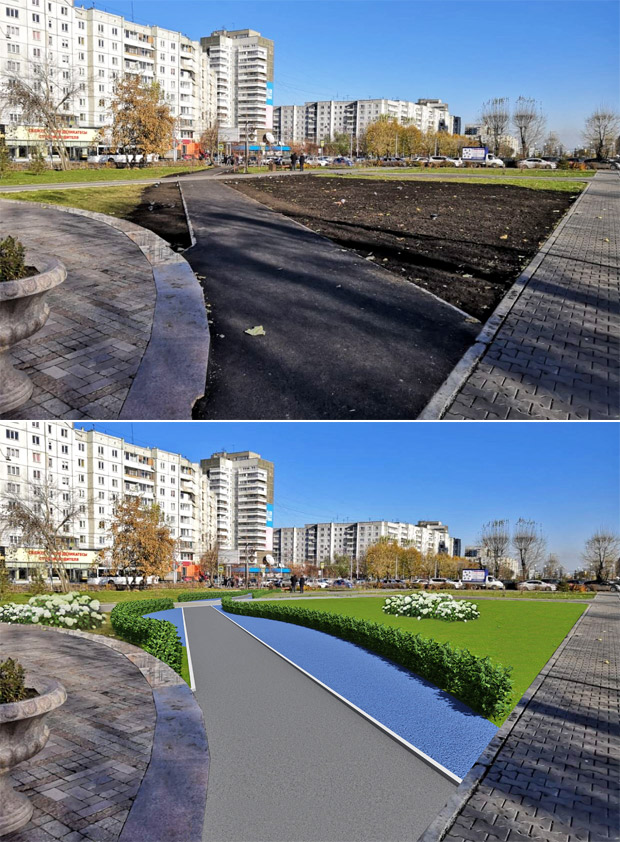 «Сквер оживает и становится местом отдыха горожан. В этом году в нем благоустроили дорожки, которые раньше протоптали отдыхающие, вдоль основного пешеходного пути плавной волной была высажена живая изгородь из кустов и сирени. К работам по оформлению сквера присоединилась лесоперерабатывающая компания АО «Краслесинвест», – комментирует Алексей Панов.